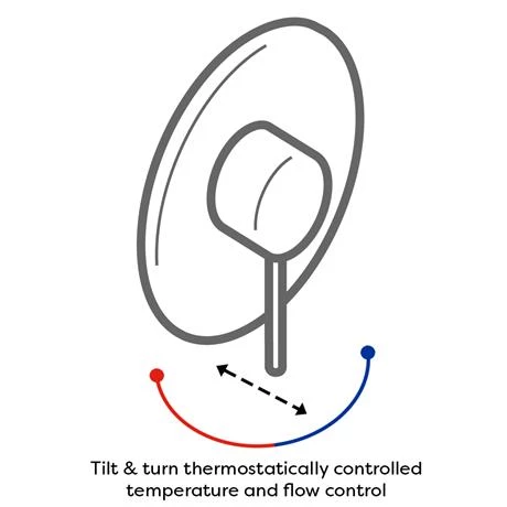 The sleek stylish handle controls temperature and flow. Simply lift lever to introduce flow, adjust left or right to set temperature. Operates one bath / shower accessory – bath spout, slide rail kit or shower head.