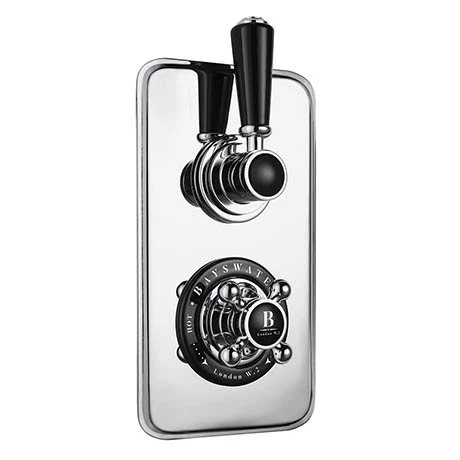 The Bayswater Black Twin Concealed Thermostatic Shower Valve combines the elegance of traditional styling with the precision and technology of modern day design. Manufactured from solid brass and beautifully finished in chrome to the highest quality. The shower valve can be used on all types of water systems and offers full thermal protection to prevent scalding in the event of hot or cold water shut off.