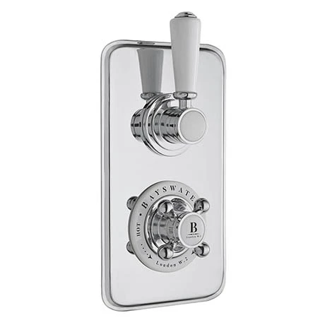 The Bayswater White Twin Concealed Thermostatic Shower Valve combines the elegance of traditional styling with the precision and technology of modern day design. Manufactured from solid brass and beautifully finished in chrome to the highest quality. The shower valve can be used on all types of water systems and offers full thermal protection to prevent scalding in the event of hot or cold water shut off.