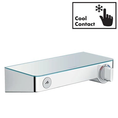 The hansgrohe ShowerTablet combines the latest in bathroom technology with a practical shelf area for a clutter-free bathroom. It’s exposed design makes installation easy and with CoolContact technology the valve will always stay cool to touch making it ideal for families with young children. Select Technology allows you to control your water at the push of a button, whether it’s selecting your water source or turning it on and off.