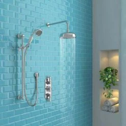 The Tec dual provides a minimalist feel for the shower and is ideal for use with our luxury shower kits. Easy to operate – the front control adjusts the temperature and back control turns the water on and off. The dual exposed shower will operate one shower accessory – a rigid riser kit or slide rail kit.