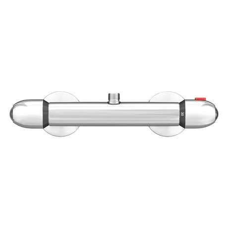 The modern Juno round top outlet thermostatic shower bar valve offers thermostatic showering with two easy to operate controls, one operates flow control whilst the other allows temperature selection. Features a pre-set maximum temperature and comes with decorative shrouds/covers to protect and conceal tile/wall edge, giving the installation a neat finished appearance. Designed to be used with a rigid riser kit (not included).