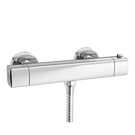 This stunning Montreal bar shower valve is part of our range of contemporary collection of showers and valves. This modern bar valve features modern soft curved styling with a chrome finish and has been constructed from solid brass. Features a pre-set maximum temperature that ensures that showering is safe and convenient. Supplied with decorative shrouds/covers to protect and conceal tile/wall edge, giving the installation a neat finished appearance. Pair the with a modern slider rail kit for a clean, and modern shower look.
