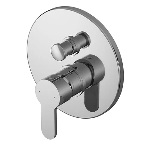For a sleek and contemporary look, the Arvan manual concealed shower valve with diverter is a great option. It features a round faceplate and matching rounded lever handle and comes beautifully finished in chrome. This shower valve operates a bath filler with shower or a showering area with two outlets.