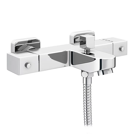 This Bath/Shower Mixer is designed to be wall mounted, the mixer is thermostatic allowing the user to control the temperature from the bar valve. The valve is designed and manufactured by leading bathroom brand Nuie, the valve is complete with a diverter to control function between tap and shower. The outlet connection is located on the bottom/Base of the valve.